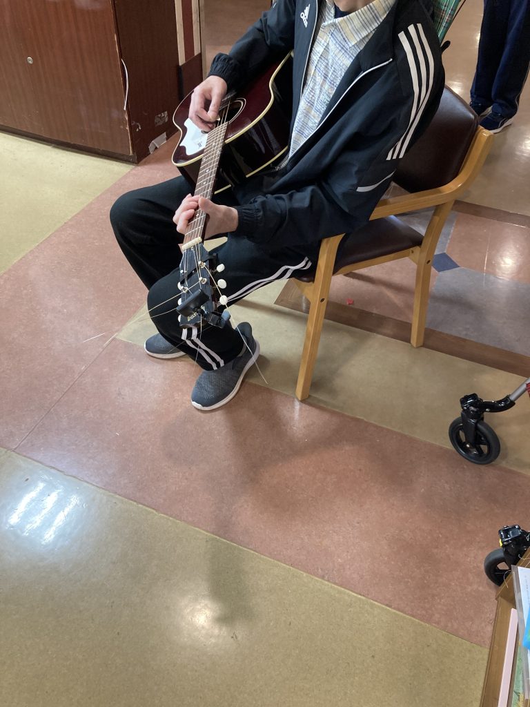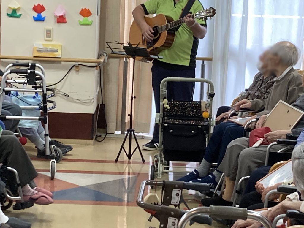ギターを弾ける入所様がおられ、お祝いに飛び入りで1曲弾いて頂き、