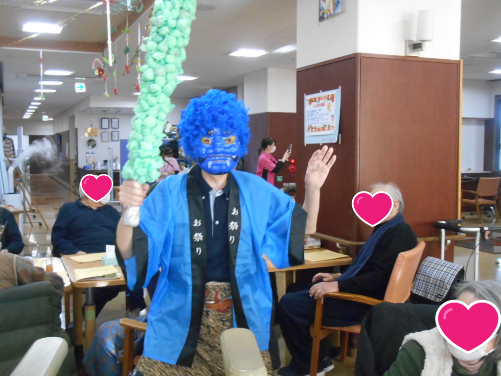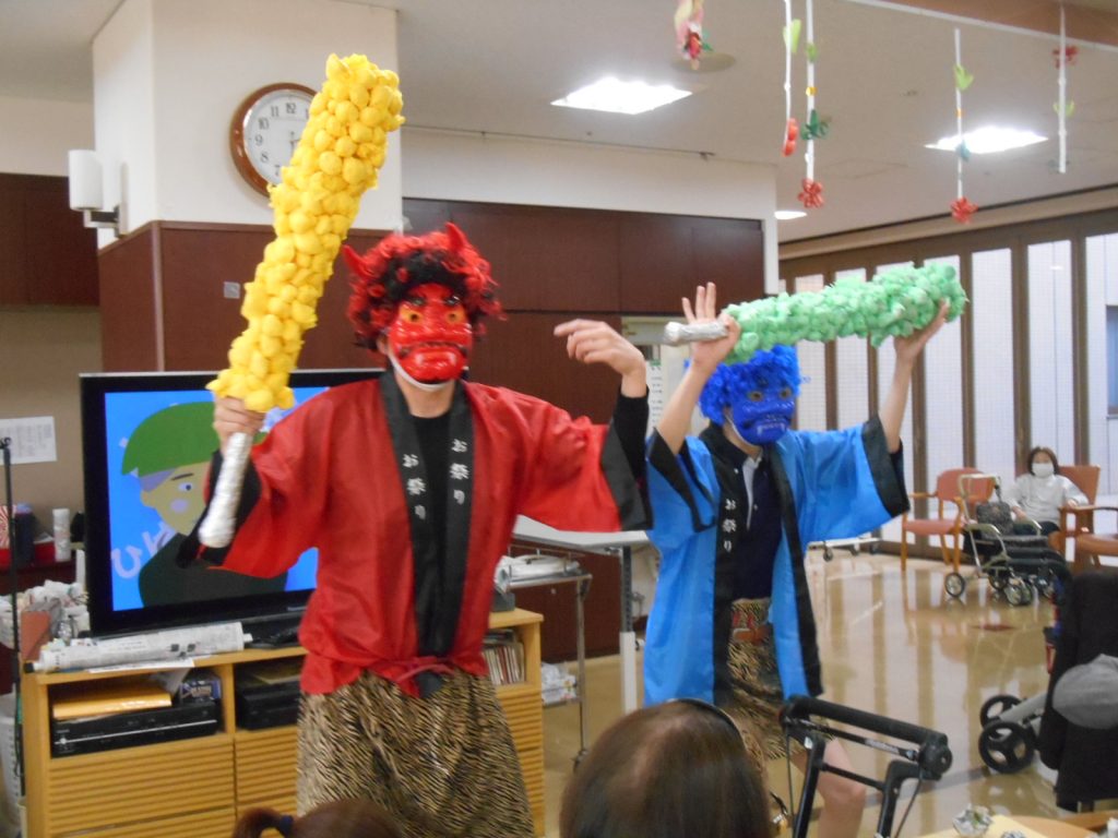 節分の日にはリハビリ職員が鬼👹となり、ご利用者様に鬼退治をして頂きました😄